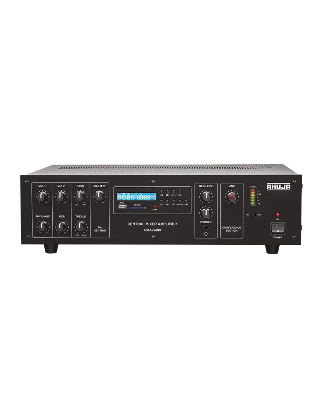 The Ahuja CMA-5400 Central Amplifier is the main control unit of the CM-5000 Conference System, designed to manage and power multiple chairman and delegate microphone units efficiently. It ensures smooth communication, controlled discussions, and high-quality sound performance in professional environments. Ideal for corporate boardrooms, government offices, seminar halls, educational institutions, courtrooms, and large conference halls, this central amplifier provides stable audio output, microphone control management, and recording connectivity. If you are searching for a conference control unit in India, Ahuja conference amplifier, or central unit for conference microphone system, the CMA-5400 is a trusted and reliable solution.