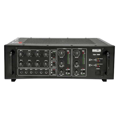- Ahuja model TZA-7000 is rugged, reliable, cost-effective 700 watts Two Zone Amplifier. TZA-7000 is ideal for multi-speaker installations where a user needs to separately set power levels for two separate areas such as indoors & outdoors.