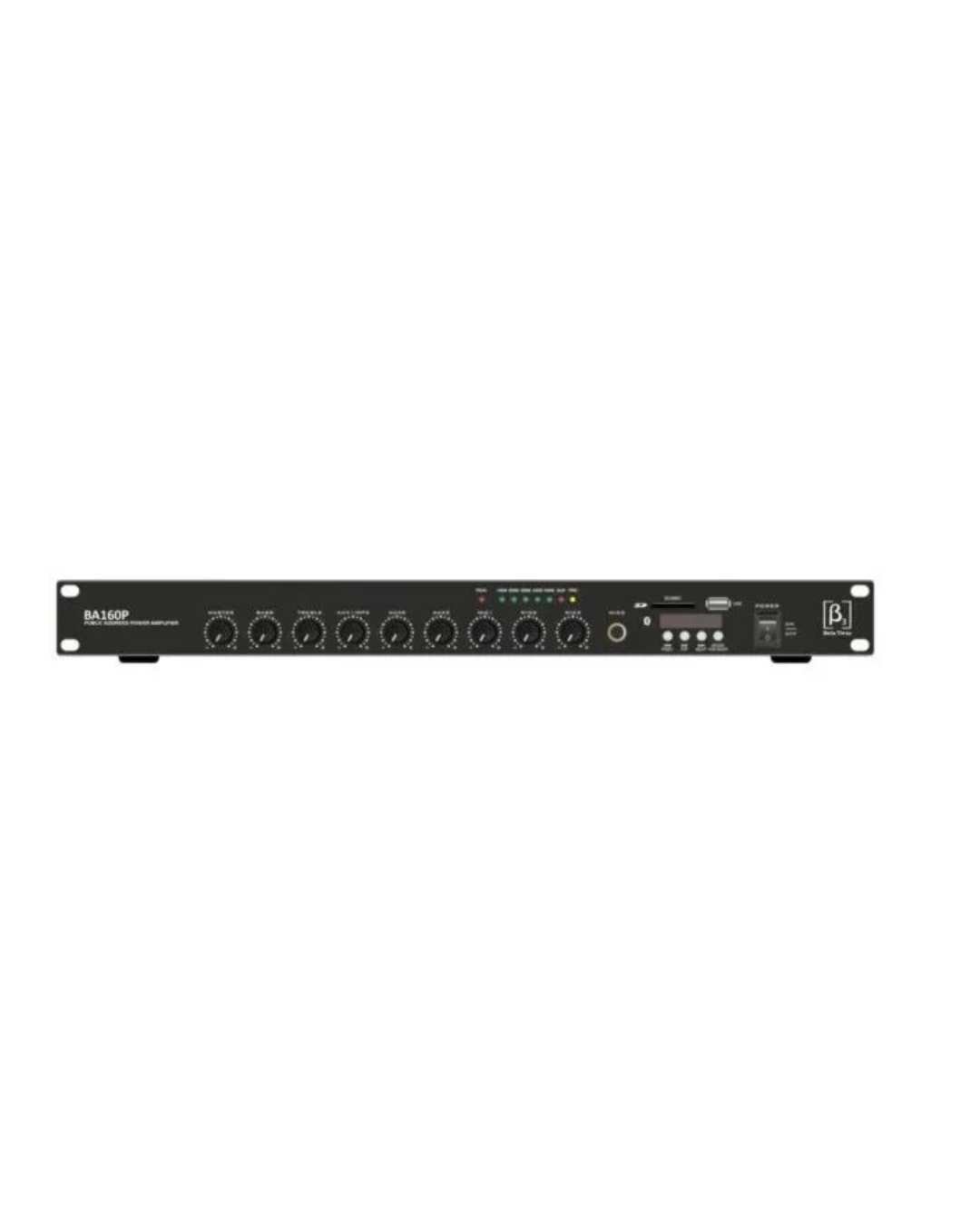 The Beta3 BA160P 160W PA Mixer Amplifier is a professional public address system designed for classrooms, offices, small auditoriums, temples, and commercial spaces in India. With 160W RMS output, it delivers clear, powerful sound for announcements, speeches, and background music. Its 6-channel mixer (3 mic + 3 line/aux) allows flexible connectivity, while the MIC3 priority mute ensures urgent messages are heard instantly. Perfect for Indian commercial and institutional setups, is easy to install, portable, and ideal for professional audio clarity in any space.