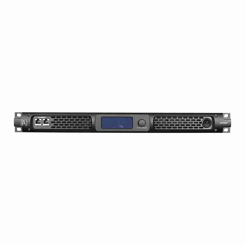 The Beta3 DD420F Professional Digital Network Power Amplifier is a high-power 4-channel Class-D amplifier engineered for concerts, large PA systems, auditoriums, clubs, houses of worship, and touring sound applications. Designed to meet the demands of modern professional audio setups, it combines massive output power, advanced DSP processing, and digital network control in a compact 1U rack-mount chassis. Powered by advanced Class-D technology, built-in DSP processing, and network audio control (Dante support) delivers massive power, crystal-clear sound, and precise system control in a compact 1U rack-mount design.