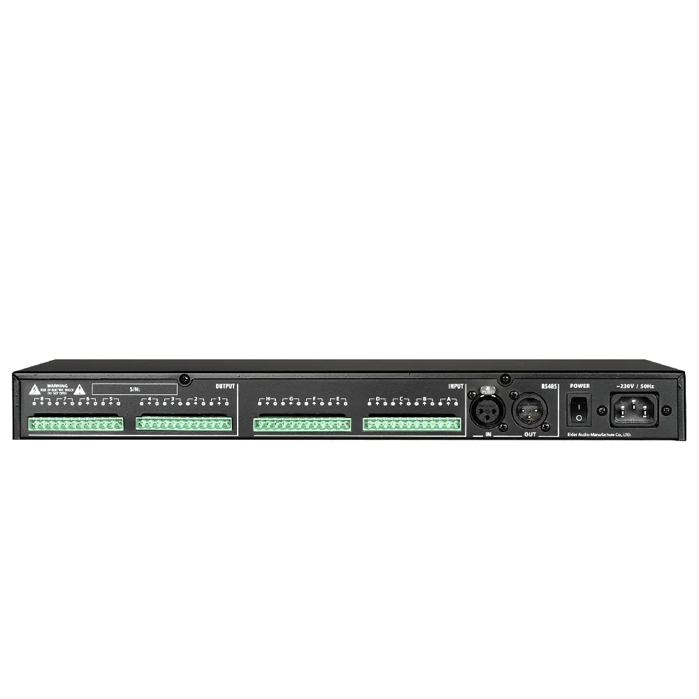 A-2 It supports 8 balanced analogy inputs and 8 balanced analogy outputs, ideal for multi-speaker PA setups.