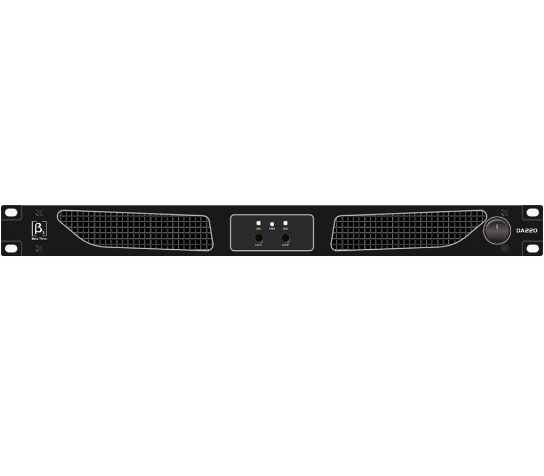 The Beta3 DA220 D-Class Power Amplifier is a high-power professional audio amplifier built for demanding sound applications across India. Designed for DJ systems, large PA setups, live concerts, auditoriums, banquet halls, clubs, religious places, and outdoor events, this amplifier delivers exceptional power, clarity, and reliability .Powered by advanced D-Class technology, provides massive output with high efficiency and low heat generation, making it suitable for continuous long-hour operation. With an impressive 4760 watts per channel at 2 ohms and bridge mode output up to 9520 watts, it can easily drive heavy subwoofers and high-power speaker systems .Compact, lightweight, and rack-mountable, is a trusted choice for sound professionals looking for a reliable, high-output power amplifier .
