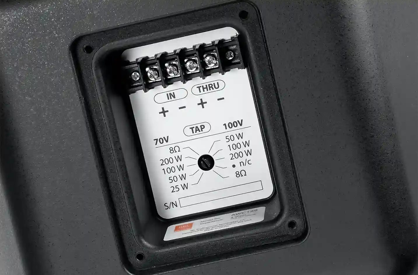 | Transformer Taps | 70V: 200 W, 100 W, 50 W, 25 W100V: 200 W, 100 W, 50 W |