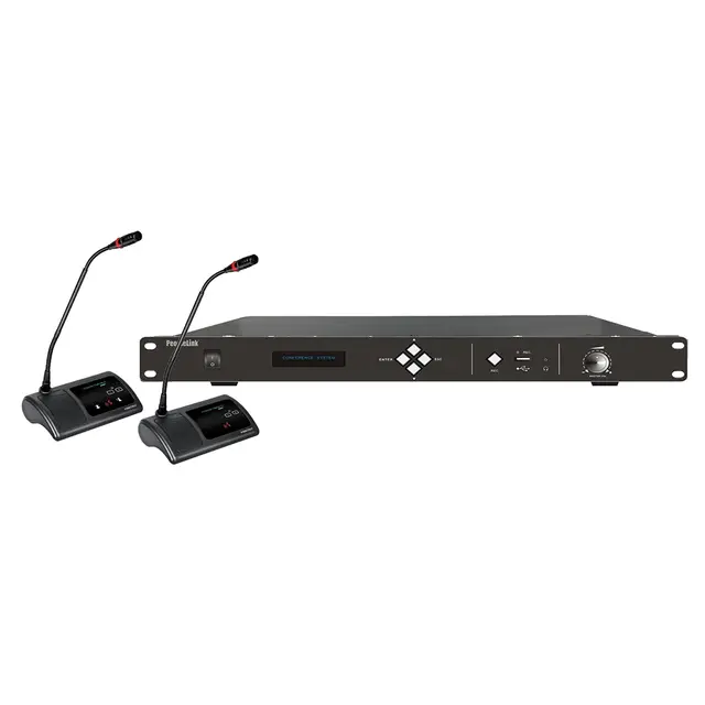 The PL-CSC Conference System Controller is a powerful and reliable digital conference control system designed for modern boardrooms, meeting halls, government offices, and corporate conference rooms. It acts as the central hub of a wired conference microphone system, managing chairman and delegate units while delivering crystal-clear audio and stable communication during meetings. Built with advanced digital audio processing technology, the PL-CSC controller ensures high-quality sound transmission, noise suppression, and automatic microphone management. With support for up to 5200 discussion units, it is ideal for small meeting rooms to large conference halls. Its rack-mount design, multiple audio inputs/outputs, USB recording capability, and camera auto-tracking support make it a perfect choice for organizations looking for a professional conference system controller in India.