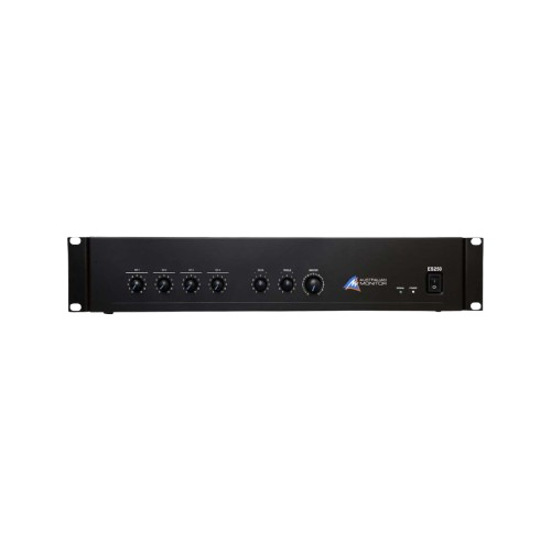 The Sonodyne ES250 is a high-performance 250-watt mixer amplifier built for professional audio installations across India. Designed for PA systems, offices, hotels, schools, retail outlets, restaurants, and worship spaces, the ES250 offers powerful, clean, and reliable sound in a compact 2RU rack-mount format. With 4 mic/line inputs, dual RCA connectivity, and 100V/4Ω output options, it provides unmatched versatility for both small and large sound setups. Engineered with a low-noise, high-efficiency amplifier, the ES250 ensures consistent, distortion-free sound performance, even during long hours of operation.