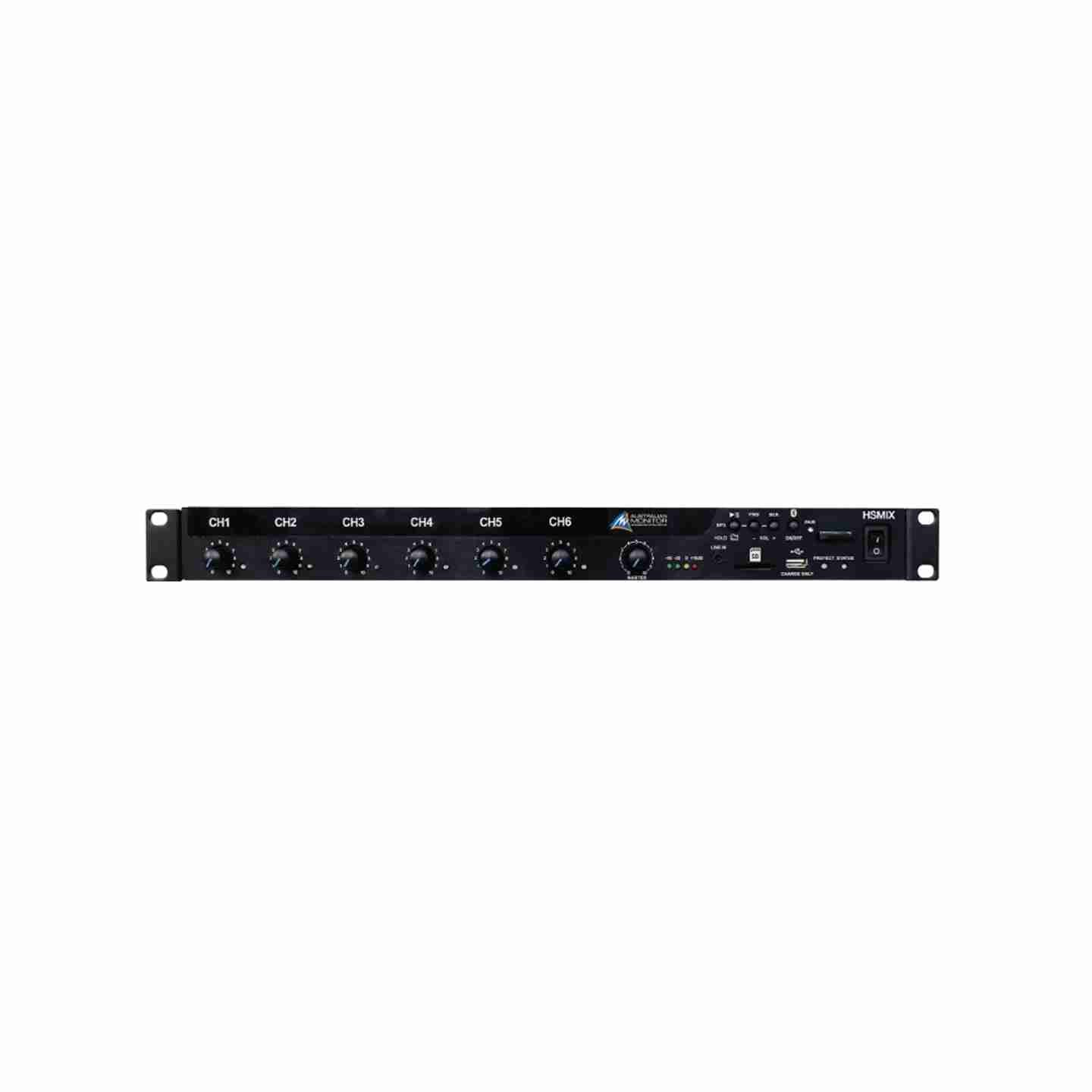 A-1 Yes, the HSMIX 9 supports a combination of mic and line inputs, plus front-panel AUX and optional Bluetooth or MP3/WAV playback on supported variants.