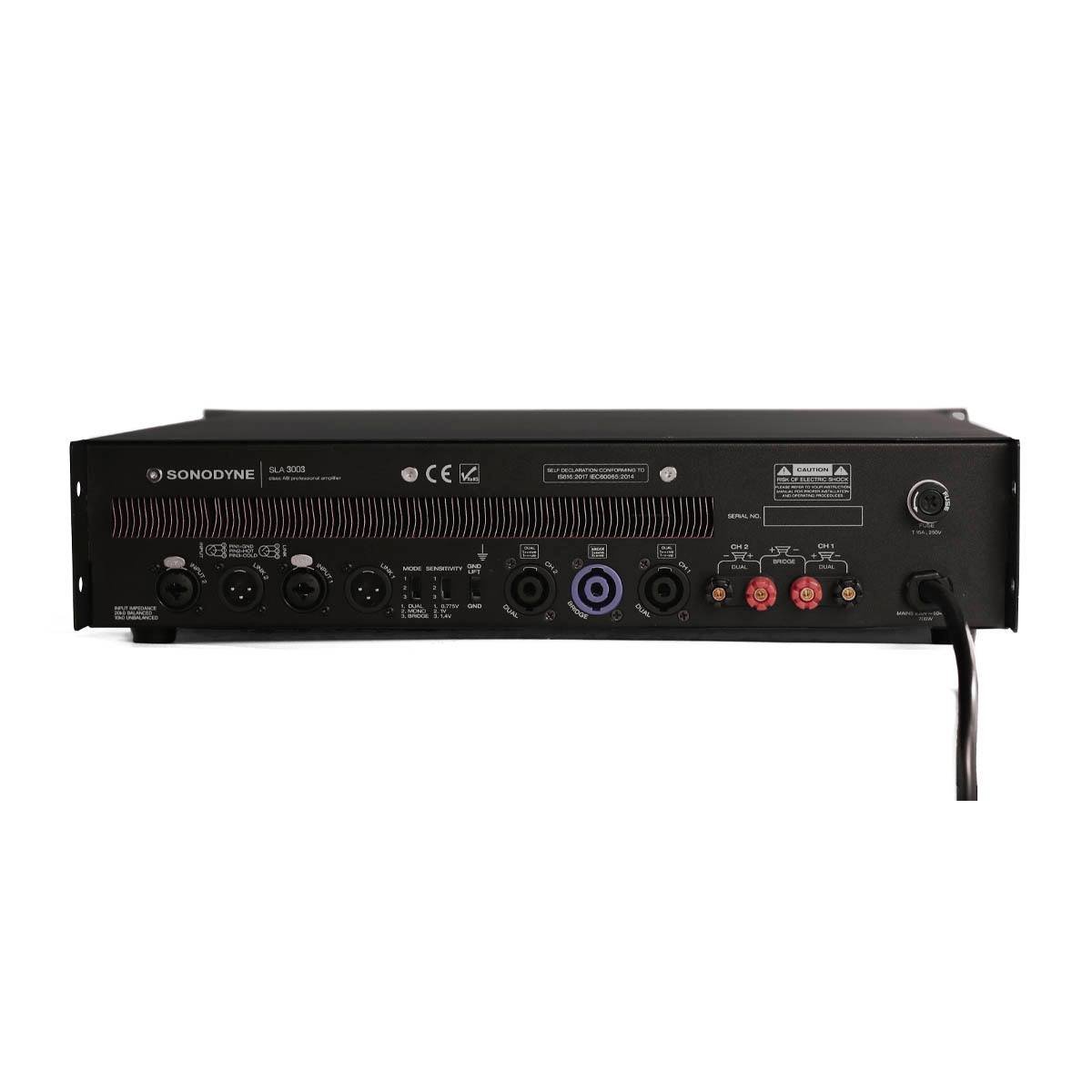 The Sonodyne SLA 3003 is a premium 2-channel professional power amplifier designed to deliver exceptional clarity, headroom, and reliability for all types of professional audio installations. Built for demanding environments such as auditoriums, houses of worship, live events, studios, clubs, and touring sound systems, this amplifier ensures powerful, distortion-free performance with precise control. Engineered with robust protection circuitry, efficient heat-tunnel cooling, and a high damping factor of 300, the SLA 3003 provides pure, uninterrupted sound reproduction even under extreme load conditions. Its low total harmonic distortion (≤1%) and wide frequency response (20 Hz–20 kHz) make it the perfect choice for professionals who demand quality, durability, and efficiency.
