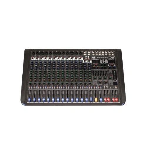 The Sonodyne SMX 1116 is a professional-grade compact mixing console designed for superior sound clarity and control. Featuring 12 mic/line inputs and 2 stereo channels, this console is ideal for live sound, studio mixing, houses of worship, schools, auditoriums, and event venues across India.With 99 onboard DSP effects, a 9-band stereo graphic EQ, and USB playback & recording, the SMX 1116 offers exceptional flexibility for both live and recorded audio. Its high 110 dB signal-to-noise ratio, ultra-low, and +48V phantom power ensure pure, distortion-free performance with both dynamic and condenser microphones.