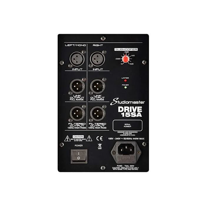 The Studiomaster Drive 15SA is a high-performance 15-inch active subwoofer designed to deliver deep, punchy, and distortion-free low frequencies for live sound reinforcement, DJ setups, touring rigs, rental companies, and professional audio installations across India. Built with a Class-D 450W RMS amplifier (1800W Peak), this subwoofer offers exceptional bass output with maximum efficiency and reliability. Its 15-inch LF driver with a 75 mm voice coil ensures tight and powerful bass response, while the frequency range of 30–150 Hz captures every low-end detail. With up to 120–127 dB Max SPL, the Drive 15SA delivers room-filling, impactful bass suitable for indoor and outdoor events .The enclosure is crafted from durable 15 mm plywood, ensuring professional-grade strength and resonance-free performance. It also includes a 35 mm pole mount for combining with full-range speakers, making it the perfect subwoofer for stage shows, DJs, banquet halls, clubs, corporate events, and touring applications.