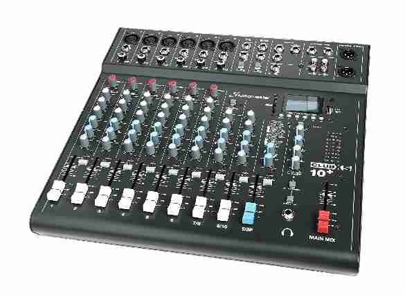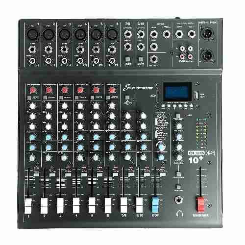 The Studiomaster CLUB XS10+ is a professional 10-channel analog mixer designed for DJs, live performances, studios, events, rehearsal rooms, and podcasting. With 6 mic inputs, 2 stereo line inputs, Bluetooth connectivity, and USB/SD playback & recording, it delivers versatile audio solutions for every setup. Equipped with 16 built-in DSP effects, 3-band EQ on mic channels, high-pass filter, and compressor controls, this mixer ensures crystal-clear sound for vocals, instruments, and music tracks. Its balanced outputs, auxiliary sends, headphone & control room outputs, and footswitch for hands-free effects control make it perfect for both beginners and professional audio engineers.