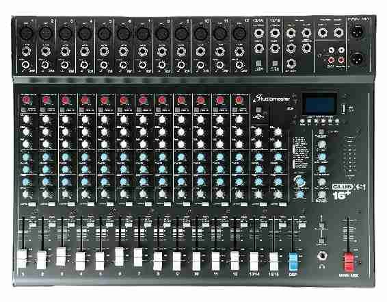 The Studiomaster Club XS16+ is a professional 16-channel analogue mixing console built for live sound, studio recording, events, churches, bands, DJs, karaoke, and home studios across India. Equipped with 12 high-quality mic inputs, Bluetooth audio streaming, USB/SD playback & recording, and 16 built-in DSP effects, this mixer delivers clear, powerful, and reliable sound in every application .Its low-noise preamps, wide gain range, and 3-band channel EQ with low-cut filter allow precise control over vocals and instruments, ensuring clean and balanced audio. The balanced and unbalanced outputs make it easy to connect to PA systems, amplifiers, and powered speakers, while the compact and sturdy design makes it ideal for both fixed installations and portable setups.