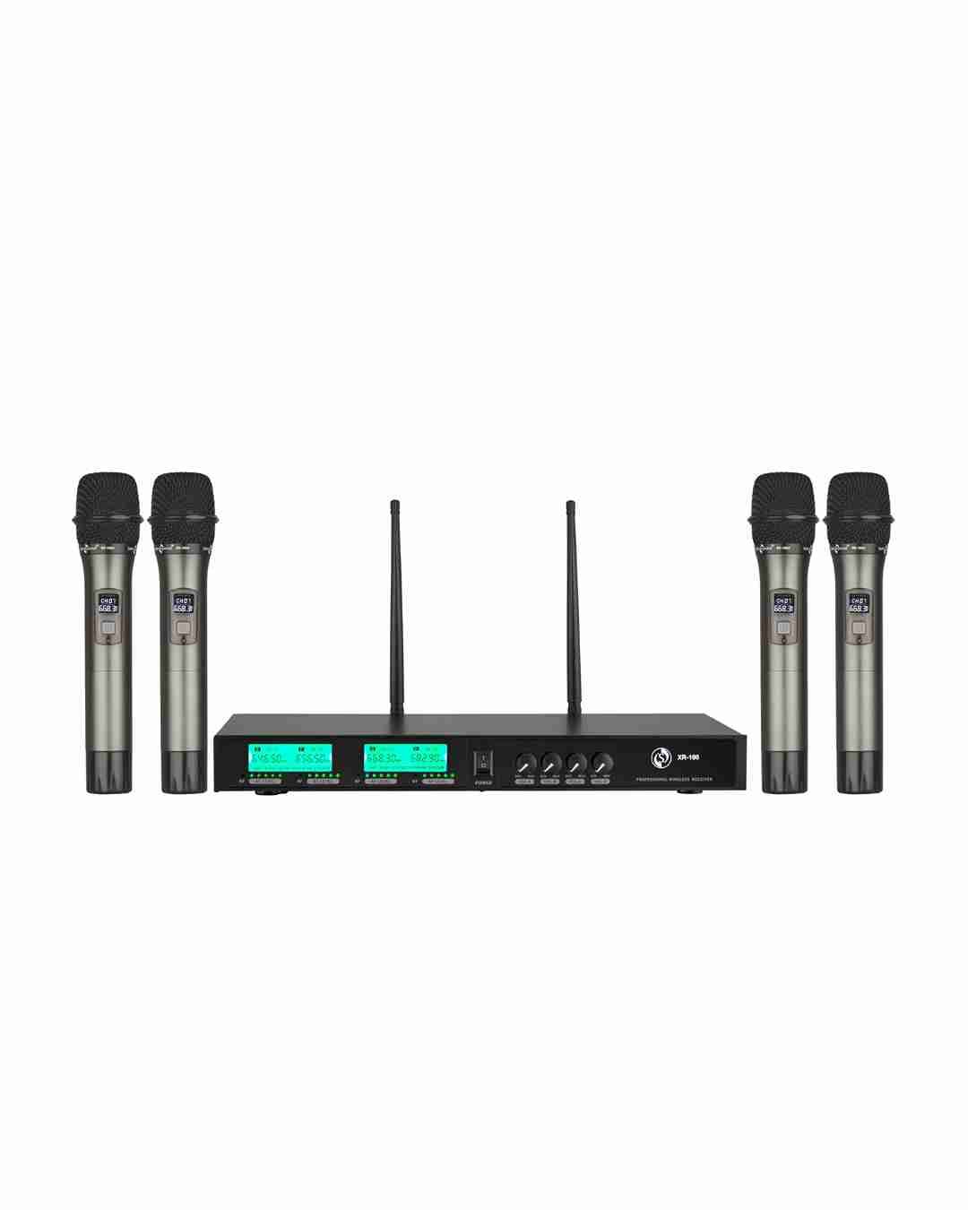 The Studiomaster XR 100 4H is a high-performance 4-channel UHF wireless microphone system built for crystal-clear audio and reliable performance. Perfect for conferences, stage shows, weddings, schools, religious events, and corporate meetings, it delivers professional-quality sound for every occasion. This advanced system features four premium handheld microphones and a 4-channel receiver with individual volume controls and LCD frequency displays for effortless operation. Powered via a 240V AC adapter and AA batteries for microphones, the XR 100 4H ensures long-lasting, uninterrupted performance for every event