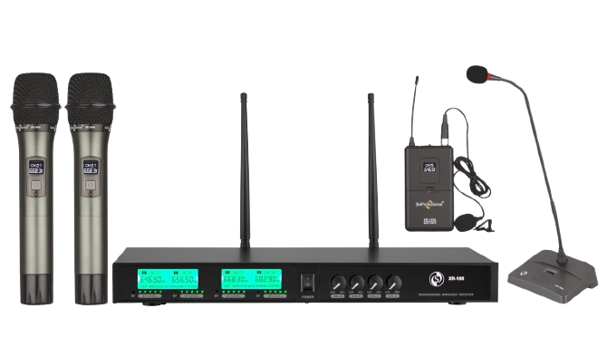 The Studiomaster XR 100 HCL is a 4-channel UHF wireless microphone system ideal for conferences, seminars, boardrooms, classrooms, auditoriums, weddings, and corporate events in India. With XLR and ¼ inch mixed outputs, it integrates easily with mixers, amplifiers, and PA systems. Powered by a 240V AC adapter for the receiver and AA batteries for microphones, it ensures reliable, long-lasting professional audio.